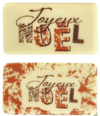 Ingrédients : Chocolat blanc 98% (sucre, beurre de cacao, poudre de lait entier, émulsifiant : lécithine de soja, arôme naturel de vanille) Beurre de cacao, colorant E172