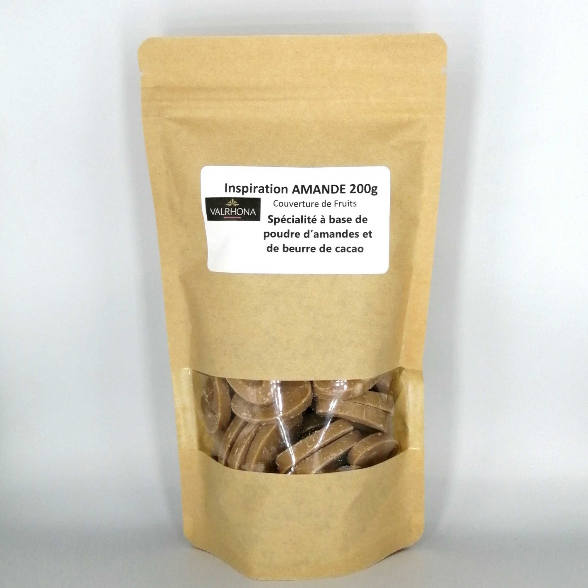 L'Inspiration amande est une spécialité à base de poudre d'amandes et de beurre de cacao, qui se pâtisse comme un chocolat blanc. (Mousse, ganache, enrobage, moulage)