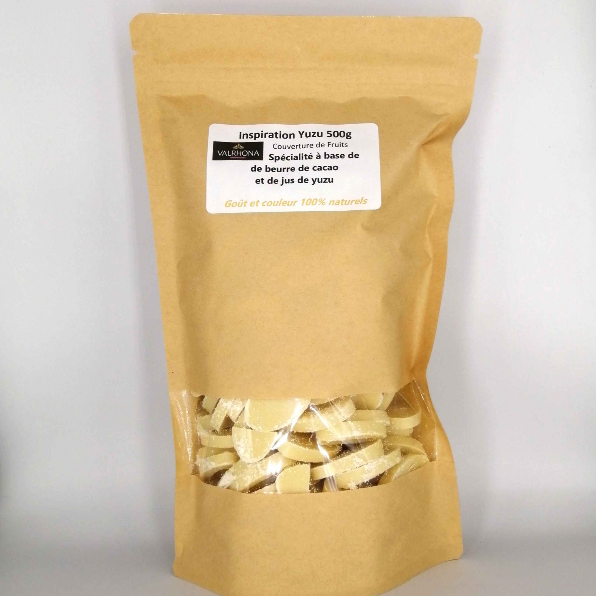 L'Inspiration yuzu est une spécialité à base de beurre de cacao et de jus de yuzu, il se travaille comme un chocolat blanc (mousse, ganache, crémeux, enrobage, moulage)