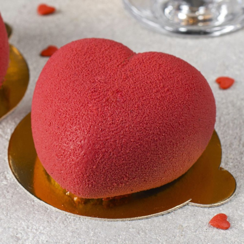 Bombe de flocage rouge pour entremets, donne un effet velours totalement ravissant !